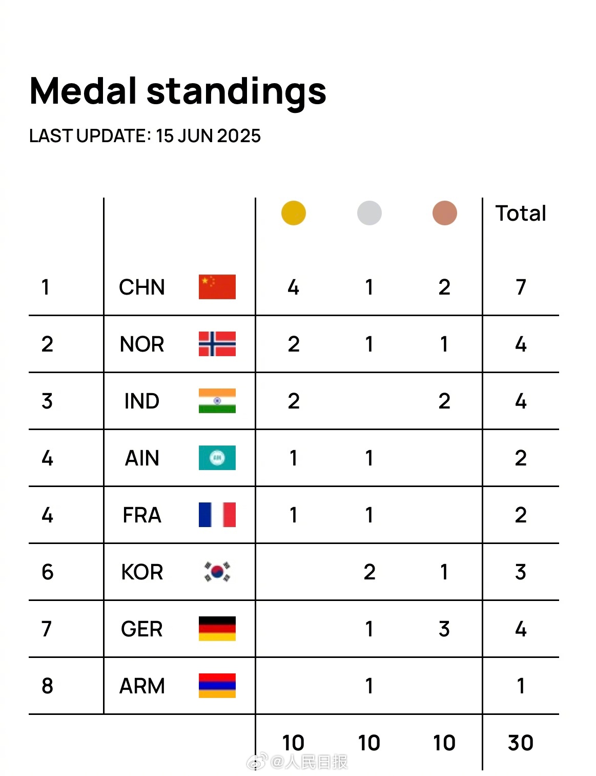 当地时间14日,2025年国际射联射击世界杯德国站结束了最后一个比赛日的争夺。在最后一个项目、10米气手枪混合团体比赛中,中国组合姚千寻、胡凯发挥出色,为中国射击队再夺一枚金牌。最终,中国队以4金1银2铜共7枚奖牌的成绩结束了本站世界杯,在金牌榜和奖牌榜均排名首位。(人民日报记者季芳)